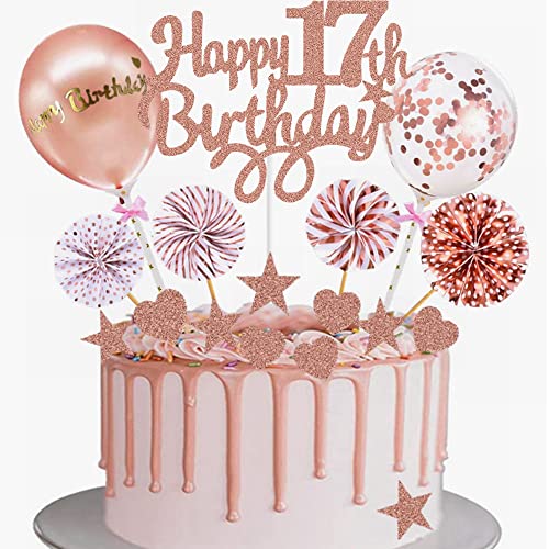 Yunchu Online Tortendeko 17. Geburtstag Mädchen - Happy Birthday Cake Topper Roségold - Kuchen Topper 17 Jahre - Kuchendeko Cupcake Toppers