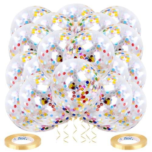 20 Stück Konfetti Ballons Luftballons Konfetti Luftballons Mit Konfetti Luftballon Konfetti Luftballons Geburtstag Luftballons Bunt für Geburtstagsfeiern Jubiläen mit 2 Rollen 10M Ballonbändern