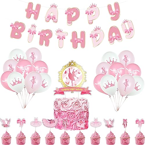 RZDQZY Ballerina Kindergeburtstag Deko: Ballerina Geburtstag Luftballons, Torte Deko, Girlande & Luftballons in Rosa