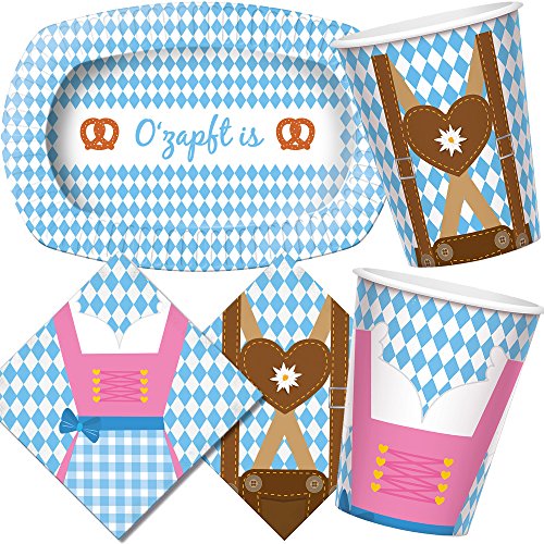 40-teiliges Partyset * OKTOBERFEST * bestehend aus: 6 beschichtete Pappteller + 20 Servietten + 8 Partybecher + 6 CARPETA-Luftballons 6 Pappteller: ca. 16cm x 24,5cm Durchmesser, 8 Partybecher: 250ml Inhalt 20 Papierservietten: voll aufgeschlagen ca. 33cm x 33cm, zweilagig Luftballons: 6 Luftballons in blau und weiß von CARPETA mit Durchmesser von ca. 24cm ... passend zu diesem Motiv gibt es auch Trinkhalme, Luftschlangen, Wimpelketten, Girlanden und weitere Deko-Artikel!, Hersteller: Carpeta®
