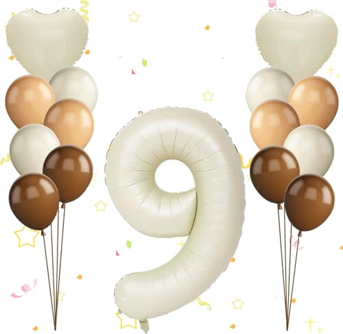 💕 Hochwertige Ballons: 12 Zoll Latex Ballons. Hochwertiger Latexballons und Folienballons, ungiftig und harmlos. Dieses Material hat metallischen Glanz, Schön, Umweltfreundlich und Wiederverwenden. 💕 Paket beinhaltet: 1 × 32'' Digital "9" Cremeweiß Folienballons, 4 x 12'' Cremeweiß Luftballons, 4 x 12'' Aprikose Luftballons, 4 x 12'' Braun Luftballons, 2 x 18'' Herz Folienballons. 💕 Perfekte 9 Geburtstag Dekoration: Perfektes Geburtstags Dekoration set für Cremeweiß ballons für die 9 Geburtstagsfeier Ihres Junge Mädchen. Es wird Ihnen helfen, eine unvergessliche und wunderbare Geburtstagsfeier für Ihre Familie und Freunde zu organisieren. 💕 Einfache Installation: Maximale Salbeigrün mit unseren einfach zu bastelnden Luftballons, die Party wird innerhalb weniger Minuten dekoriert. Es ist so einfach, dass es jeder kann. Entdecken Sie das Vergnügen, Ihre Party zu dekorieren und lassen Sie uns diesen Tag zu etwas Besonderem machen. 💕 Achtung: Wenn Sie Fragen haben, kontaktieren Sie uns bitte, wir werden Ihnen innerhalb von 24 Stunden eine zufriedenstellende Antwort geben., Hersteller: Dalettu