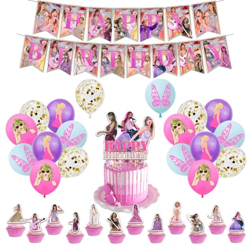 SMLHPARTY Geburtstag Party Deko: Kindergeburtstag Deko mit Luftballons, Tortendeko, Banner - Pink, Cartoon