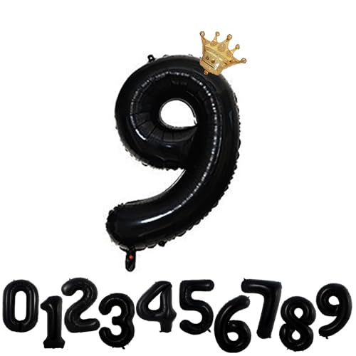 Groß Schwarz Zahl Luftballon 9 Helium Folienballon Zahlen Ballon XXL Folien Schwarz Ballon 9 Geburtstag 100cm/40inch