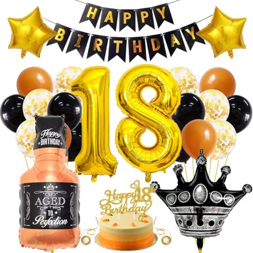 SNOWZAN Luftballon 18.geburtstag Junge Mädchen 18 Geburtstagdeko Happy Birthday Deko 18 Geburtstag Mädchen 18 Party Deko Schwarze Gold 18 Jahre Geburtstagdeko 18 Ballon Deko 18er Deko Geburtstag