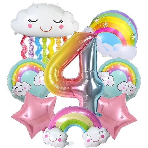TZQFROCE Regenbogen Geburtstagsdeko Mädchen 4 Jahre 8 Stück Regenbogen Deko Kindergeburtstag Regen-bogen Luftballons für Dekoration