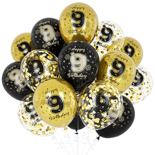 Unisun 9. Geburtstag Luftballons - Dekorationen für Jungen, Happy Birthday Schwarz Gold Jahrestag Ballons Deko für Party Supplies