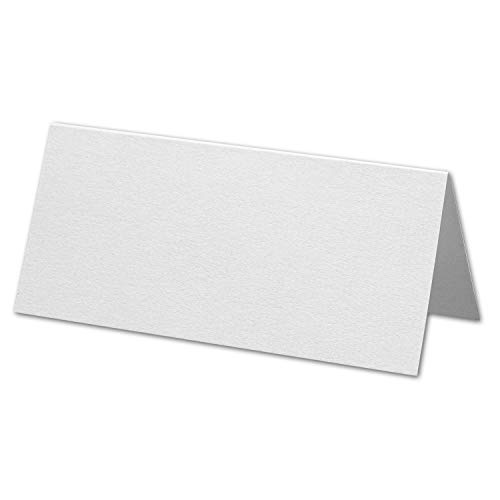 ARTOZ 75x Tischkarten - Blütenweiß (Weiß) - 45 x 100 mm blanko Platz-Kärtchen - Faltkarten für festliche Tafel - Tischdekoration - 220 g/m² gerippt