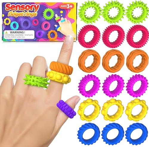 LESONG Fidget Ringe Toys für Kinder, 18 Stück Anti Stress Spielzeug Fidget Squishy Toys für Autismus, Sensorik Ringe Spielzeug für Kinder Erwachsene Mitgebsel Geburtstag Geschenke ADHD