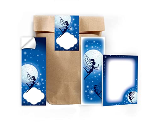 Junapack 12 Lesezeichen + 12 Mini-Notizblöcke + 12 Geschenktüten (Natur) + 12 Aufkleber Fee Mitgebsel Gastgeschenk beim Kindergeburtstag Mädchen