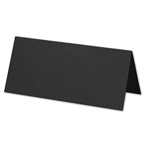 ARTOZ 50x Tischkarten - Schwarz (Schwarz) - 45 x 100 mm blanko Platz-Kärtchen - Faltkarten für festliche Tafel - Tischdekoration - 220 g/m² gerippt