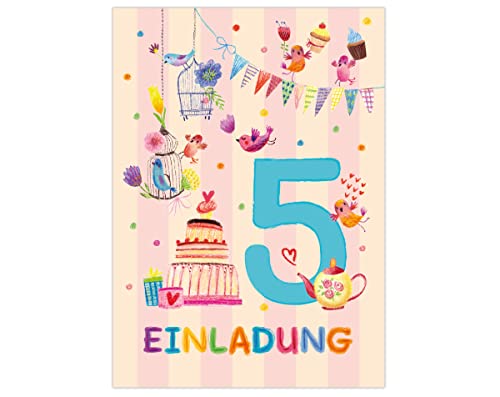 Junapack 12 Einladungskarten zum 5. Kindergeburtstag Einladung zum fünften Geburtstag Mädchen Vögelchen
