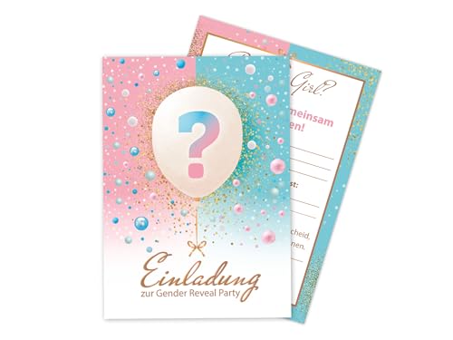 Limonia 15 Einladungskarten mit Umschlägen zur Gender Reveal Party – Stilvolle Einladungen zur Babyparty 'Boy oder Girl' – Baby-Überraschungsparty – Luftballons in Blau und Rosa