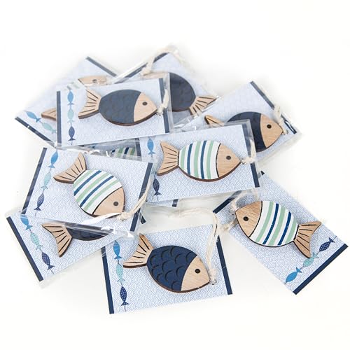 Logbuch-Verlag 10 kleine Gastgeschenke Kommunion Konfirmation Taufe - Give-Away Mitgebsel für Gäste blau mit Holzfisch & Karte