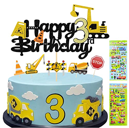 Tortendeko Junge 3. Geburtstag Junge Tortendeko Bagger Cake Topper Geburtstag Geschenk Junge 3 Jahre 13Stück Bagger Geburtstag Deko+2 Bagge Sticker Kinder (3)