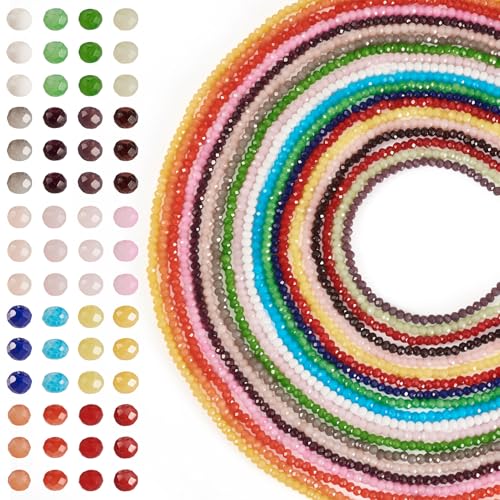 Lieferumfang: 20 Stränge Jade-Glasperlen (ca. 158 Stück/Strang), einschließlich 20 Farben; ca. 3 mm Durchmesser, 2 mm dick, Loch: 0,8 mm. Material: Diese Jade-Imitations-Perlen sind aus hochwertigem Glasmaterial, das robust und langlebig ist, nicht leicht zu verblassen und zu brechen, angenehm zu tragen. Design: Diese Glasperlen in Jade-Imitation verfügen über eine facettierte Oberfläche, in 20 verschiedenen Farben, in Rondelle-Form, sieht elegant und hübsch aus. Breite Anwendung: Diese Glasperlen-Stränge sind ideal für die Schmuckherstellung, Halsketten, Ohrringe, Armbänder, Schlüsselanhänger, hängende Ornamente und andere Schmuckherstellung. Tolles Geschenk: Diese Glasperlen in schickem Design und verschiedenen Farben sind perfekt als Schmuckgeschenk für Ihre Freunde, Ihre Liebsten und Ihre Familie.