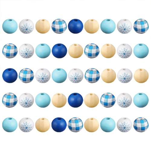 50 Stück 16 mm Holz Schneeflocken Perlen Weihnachten Holzperlen Weihnachtsbaum Girlande Holzperlen Winter Holzperlen Urlaub Farbe Holzperlen Handwerk Holz Runde Perlen
