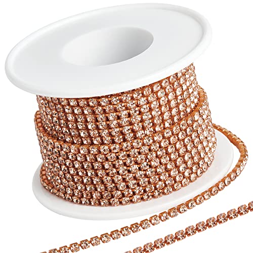 10 Yards Strasskette: Kommt mit 1 Rollen mit 10 Yards langer, 2.5 mm Durchmesser Kristall-Strasssteinkette in hellem Pfirsich, verpackt mit einer Spule, die es einfach machen, die Strasskette zu organisieren und zu verhindern, dass sie überladen wird HOCHWERTIGES MATERIAL: Die Kette besteht aus Metallmaterial und Strass. Die Metallfassung des Kristall-Strass-Kettenbesatzes ist mit Kupfer beschichtet, was nicht leicht zu rosten und zu verblassen ist, und jede Kralle an der Fassung kann den Strassstein festhalten, nicht leicht abfallen. EINFACH ZU VERWENDEN: Sie können es auf jede gewünschte Länge zuschneiden, dann nähen sie es auf kleidung, Taschen, Schals mit Nadel und Faden, und für harte Oberflächen, Sie können es mit etwas Kleber auf die Oberfläche kleben (nicht im Lieferumfang enthalten).. DEKORATIONSZUBEHÖR: Gut für verschiedene Feiertagsdekorationen, Hochzeitsfeier dekorieren, Brautschleier, Kostüme, Kuchendekoration, Kerzen, Handy, Vasen, Handwerk und vieles mehr. BREITE ANWENDUNG: Das Aufnähen von Kristall-Strassstein-Kettenbesatz ist perfekt zum Dekorieren von Kleidungsstücken, Schuhe, Taschen, Kappen, Mobiltelefonhülle, Stirnband, Haarnadel und Herstellung von Schmuck, Christbaumschmuck und mehr.