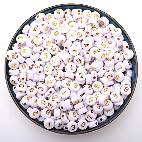 HERZWILD 800pcs Nummern Perlen Nummer 0-9 perlen 4x7mm Zahlenperlen Rund bastelnperlen für Schmuck Basteln (4 * 7 gold-number)