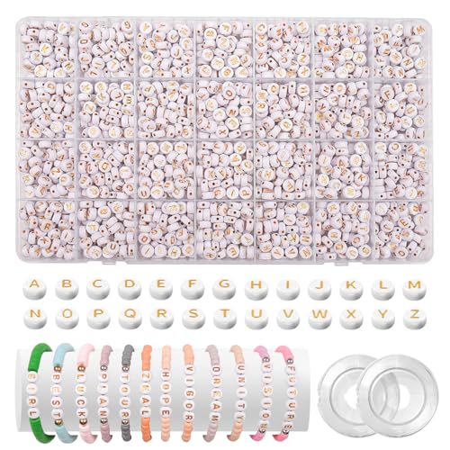 JHWELRG 1450 Stück Buchstabenperlen Set, Selber Machen Perlen für Armbänder 4 x 7mm Goldene Acryl Alphabetperlen, Buchstaben perlen zur Schmuckherstellung,Freundschaftsarmband Perlenherstellung