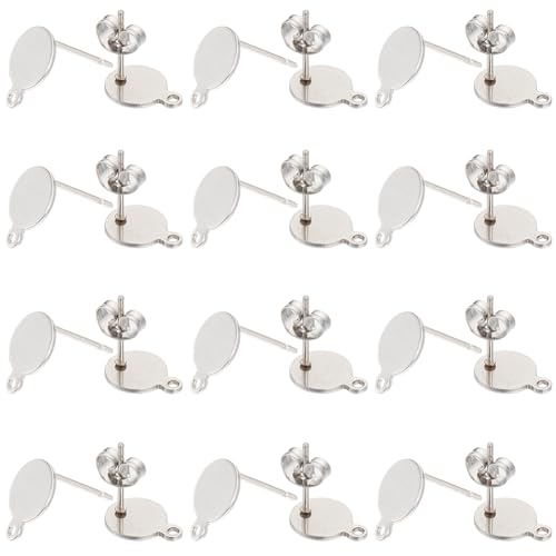 SUNNYCLUE 1 Box 300 Stück 304 Ohrstecker Aus Edelstahl Flache Ohrstecker Großpackung Silberfarbenes Metall Einfache Runde Halb Gebohrte Perlen Ohrstecker Zur Schmuckherstellung Ohrringe DIY Bastelzube