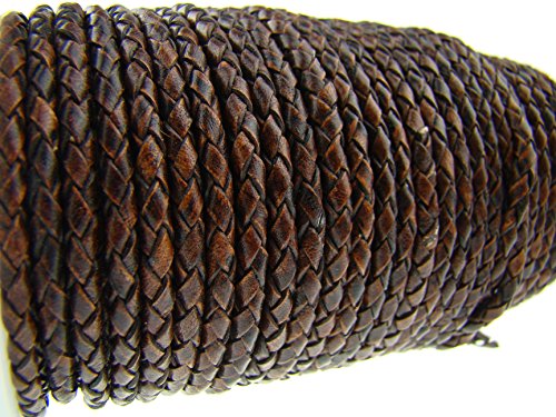 Lederschnur geflochten Rund 3 mm. Antik Braun 1 m - Länge: wählbar