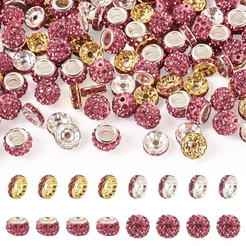 Lieferumfang: Es gibt 120 Stück rosa Strass-Disco-Perlen, 4 Stile sind verfügbar, und es sind runde Ton-Strassperlen, europäische Perlen mit großem Loch, flache runde Messingkernperlen und flache runde Eisenkernperlen Hochwertiges Material: Die Discokugelperlen für die Schmuckherstellung bestehen aus Polymerton und Strass, während die großen Lochperlen und flachen runden Perlen aus Metall und Strass bestehen, die alle eine gute Härte, eine Kristalloberfläche und eine stabile Struktur haben Glitzernde Disco-Perlen: Diese wunderschönen Disco-Perlen sind mit Strasssteinen bedeckt, die super schwer abzufallen sind und wie Diamanten funkeln! Sie sind perfekt, um die Aufmerksamkeit der Menge auf sich zu ziehen und Ihrem Look ein wenig Magie zu verleihen 【Werkzeuge für Souvenirherstellung】 Unsere Disco-Zwischenperlen sind so schön und zart, dass sie als nützliche Werkzeuge der Souvenirherstellung für Ihre Lehrer, Klassenkameraden, Kollegen, Eltern, Freunde dienen können, die Ihre Rücksichtnahme zeigen und zu einer dauerhaften Beziehung beitragen werden Breiter Anwendungsbereich: Es ist eine gute Idee, die bunten glitzernden Strassperlen für Frauen für Ihre Bastelarbeiten zu verwenden, wie Halsketten, Armbänder, Ohrringe, Handy-Zubehör, Taschenanhänger, Schlüsselanhänger, Schlüsselbänder, Perlenstifte
