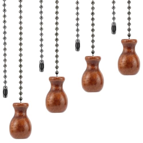 4 Stück Zugkette:Insgesamt 4 Stück Deckenventilator-Zugkette, brauner Zugkettenanhänger aus Holz in Glühbirnenform, reich an Mengen. 12.4-Zoll-Verlängerungskette:12.4 Zoll lang (31.3cm ), Größe des Anhängers:ca. 1.3 x 0.8cm . (Bitte bestätigen Sie die Größe vor dem Kauf, die Anhänger sehr klein). Härte Material:Die Anhänger bestehen aus einer Legierung, und die Kette ist aus hochwertiger Beschichtung gefertigt, mit Härte, stark und langlebig, rostet nach längerem Gebrauch nicht. Einfach zu bedienen:An einer 31cm langen Edelstahl-Perlenkette mit Anschlussstück befestigt, Einfach auf die gewünschte Länge zuschneiden und leicht erkennen, welcher der Lüfterschalter und welcher der Lichtschalter ist. Breiter Anwendungsbereich:Holzventilator-Lichterkette für Schlafzimmer und Heimdekoration.. Mit den Haken können Sie Ihre Lieblings-Anhängerornamente anbringen, Erstellen Sie ganz einfach Ihre eigenen DIY-Deckenventilator-Schnurzugketten