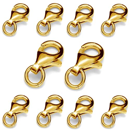 My-Bead Karabinerverschlüsse 925 Sterling Silber vergoldet 18K Gold 9mm (11mm) Kettenverschlüsse Ketten Armbänder Ersatz & Reparatur Karabinerhaken DIY (10 Stück)