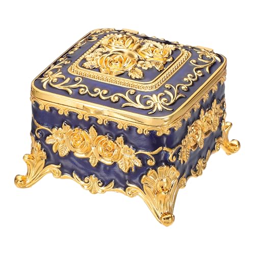 PATIKIL Antike Metall-Schmuckschatulle, quadratische Schmuck-Organizer-Box Schmuck-Aufbewahrungsbox für Ringe Ohrringe Halskette, Frisiertisch,Weiß