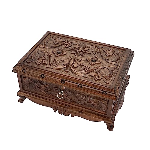 Außenmaße: Länge: 32 cm, Höhe: 15,5 cm, Breite: 23,5 cm Innenmaße: Länge: 26,5 cm, Höhe: 8,5 cm, Breite: 17,5 cm Gewicht: 1,8 kg Nussbaum Puzzle Box mit verstecktem Schlüssel. 100 % Walnussbaum und handgeschnitzt.