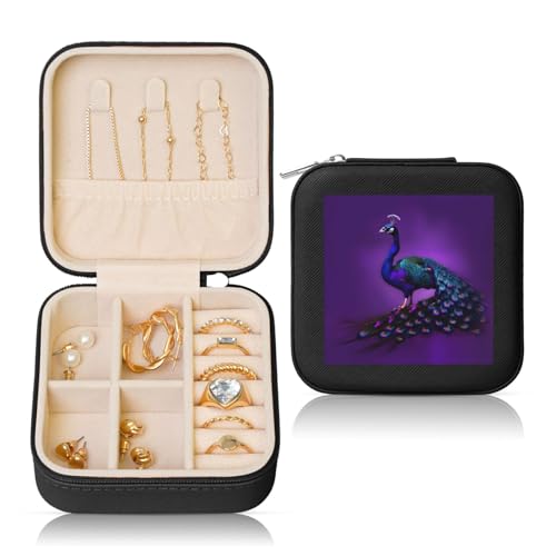 YQxwJL Lila Pfau Muster Druck Schmuck Aufbewahrungstasche, PU-Leder Schmuckschatulle Box, Reiseaufbewahrung Geburtstag Geschenk für Frauen