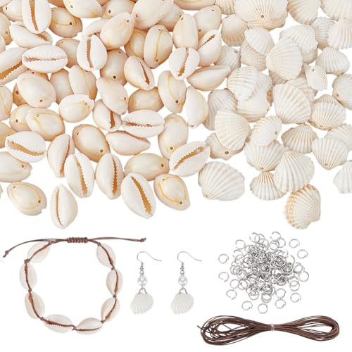 AHANDMAKER Natürliche Kauri Perlen Jakobsmuschel Perlen Mit Loch Inklusive Kordel Und Biegeringe Schmuck Set Mit Muscheln Für Sommer Strand Und Hochzeit Strandparty