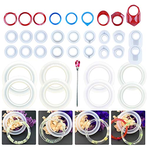 Allazone 32 Stück Epoxidharz Gießformen Gießform Resin Form, Ring Armband Schmuck Silikonform für Schmuck Handwerk DIY