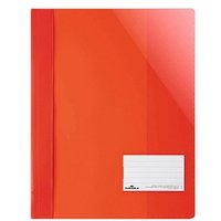 25 DURABLE Schnellhefter Kunststoff rot DIN A4 überbreit – flexibel einsetzbar und platzsparendDank der 25 DURABLE Schnellhefter Kunststoff rot DIN A4 überbreit bleiben Ihre Dokumente sortiert, sauber und knitterfrei. Sie können Ihre Papiere darin platzsparend und gut geschützt aufbewahren. So behalten Sie stets den Überblick und erleichtern sich die Büroarbeit. Wenn Sie bei der Ablage häufig Schutzhüllen, Registerkarten oder Trennblätter verwenden, dann werden Sie von dem überbreiten Format sehr profitieren. Sie werden nämlich dank 22,4 x 31,2 cm (BxH) komplett abgedeckt und so vor Eselsohren geschützt.Die AbheftvorrichtungDurch die kaufmännische Heftung ist das Abheften von unten nach oben am einfachsten. Das heißt, die aktuellsten Seiten liegen immer ganz oben und Sie sehen direkt den letzten Stand eines Vorgangs. Beim Abheften steht Ihnen eine Kapazität von 200 Blatt zur Verfügung.Widerstandsfähig und robust!Wenn Sie sich für diesen Archivierungshelfer entscheiden, dann erwartet Sie ein robuster Begleiter für Ihre tägliche Büroarbeit. Hergestellt aus PVC, ist er schmutzabweisend, stabil und besonders langlebig.Ihre Ablage in auffallendem RotDamit Sie nicht lange nach den notwendigen Unterlagen suchen müssen, sorgt das Einsteckschild auf der Vorderseite für einen schnellen Überblick. Je nach Art des Hefterinhalts eignen sich manche Farben mehr als andere. Für Ihre Ablage erhalten Sie Archivierungshelfer in der auffälligen Farbe Rot. Die Vorderseite ist durchsichtig, was einen Blick auf den Inhalt ermöglicht.Wir haben das Passende für Ihre ArchivierungBestellen können Sie diese 25 DURABLE Schnellhefter Kunststoff rot DIN A4 überbreit gleich hier bei uns online und bekommen sie direkt und schnell geliefert.