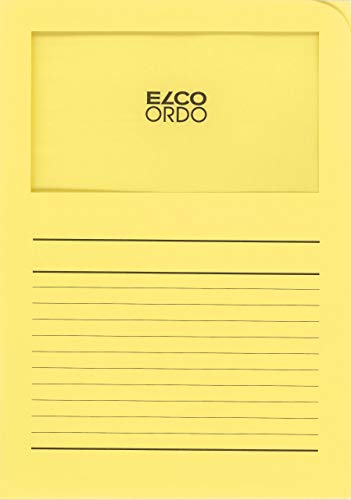 Organisationsmappe Elco Ordo classico; Ausführung: mit Sichtfenster in Größe 180 x 100 mm, mit Linienaufdruck; Werkstoff: Papier; Flächenmasse des Papiers: 120 g/qm; Verwendung für Papierformate: A4; Größe (B x H): 220 x 310 mm; Zertifikate und Zulassungen: Forest Stewardship Council (FSC); Farbe: gelb; Art der Verpackung und Inhalt: Packung mit 10 Stück;