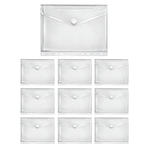 Die 10 Dokumentenmappen bestehen aus einer transparenten und starken PP-Folie Sie sind mit einer abgeschrägten Klappe und einem Klettverschluss ausgestattet In der Sammelmappe ist Platz für ca. 100 Blatt DIN A4 Papier und sie verfügt über eine Euro Lochung Ideal für die Aufbewahrung von Unterlagen und anderen kleinen Utensilien Die Mappen sind auch für den Postversand als Großbrief geeignet