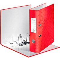 Mehrzweck-Hebelordner in Metallic-Rot, 80mm/8cm breiter Rücken, dieser A4-Ordner fasst 600 Blatt (80 g/m² Papier), Für die einfache Handhabung von Dokumenten unterwegs und im Büro Robuste, stabile graue Pappe mit glänzendem, laminiertem Papier für hochwertige Optik, FSC-zertifiziert, Daumenloch für einfache Handhabung, stilvolles, geklebtes Rückenetikett und zweifarbiges Cover 50 Prozent breitere Öffnung und 20 Prozent schnellere doppelseitige Ablage dank der patentierten 180°-Hebelmechanik, Rado-Ringe halten den Ordner geschlossen und aufrecht im Regal Verschönern Sie Ihren Schreibtisch mit diesem und anderen Produkten aus der Leitz WOW-Reihe Lieferumfang: 1 x Leitz Schnellhefter, Rot, 10050026, Maße (BxHxT): 80 x 318 x 285 mm, 480g, A4 Ordner, für Standard 2-Loch-Lochung