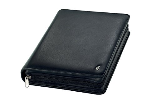 Chronoplan 50102 nachfüllbarer Terminplaner / Organizer / Terminkalender Mappe aus Premium Rindnappaleder (Format A5 (220 x 275 mm) mit Reißverschluss, Ringbuch, ohne Kalendarium) schwarz