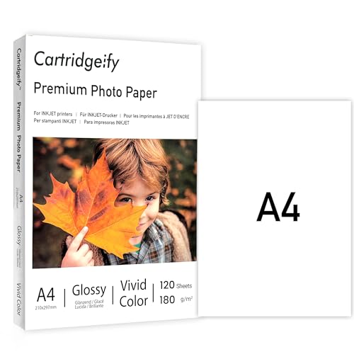 Cartridgeify Premium Fotopapier, glänzend, A4 (210 x 297 mm), 120 Blatt, 180 g/m², für alle Tintenstrahldrucker