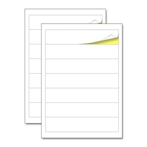 Weiße matte Oberfläche. Schreiben Sie mit Stiften, Bleistiften und Markern. Perfekt zum Drucken mit Tintenstrahl- und Laserdruckern. 192 x 38 mm. 7 Stück pro Blatt, DIN A4 (297 x 210 mm). 50 Blatt. 350 Stück. PDF- und Microsoft Word-Druckvorlagen werden bereitgestellt.