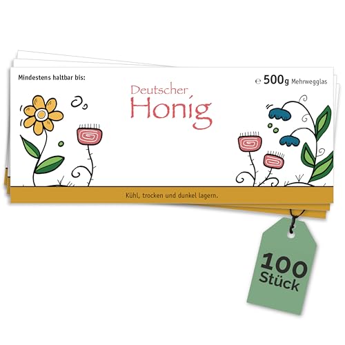 Apoidea – Honig Etiketten 500 g nassklebend – 100 Stück zum Stempeln/Etiketten Honiggläser/Honig Aufkleber für selbstgemachten Honig/Honigetiketten für Honiggläser