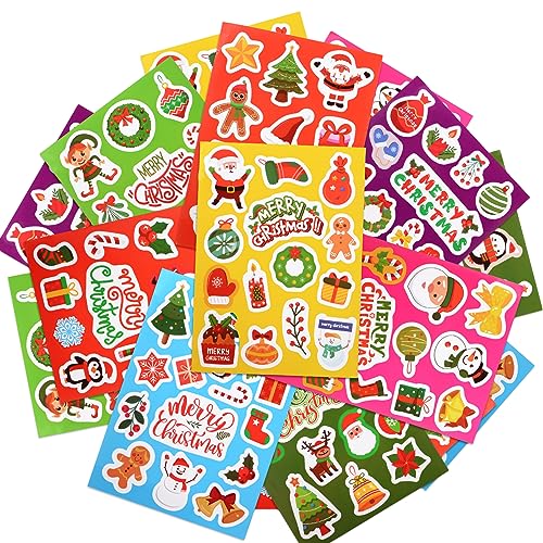 COLOFALLA 226 Stück Weihnachten Aufkleber Sticker Merry Christmas Weihnachtssticker Selbstklebend Geschenkaufkleber Weihnachtsdeko Deko für Geschenke Umschlag Verpackung Kinder Basteln