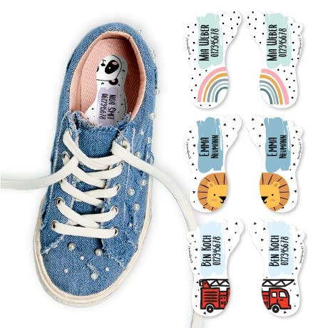 INDIVIDUELLES DESIGN – Wähle zwischen einem der vielen fröhlichen Motive aus und personalisiere die Etiketten mit einem Namen über „Jetzt anpassen“. Mit unserem Namenssticker bleiben die Schuhe deiner Kinder unverwechselbar und einzigartig! 8 PAAR SCHUHETIKETTEN – Enthält 16 Aufkleber mit Namen für insgesamt 8 Paar Kinderschuhe. Perfekt für Kita, Schule oder Sport – einfach anbringen und sofort wissen, wem die Schuhe gehören. STRAPAZIERFÄHIG & LANGLEBIG – Unsere hochwertigen Aufkleber mit Namen halten Reibung und Feuchtigkeit problemlos stand. Ideal für den täglichen Gebrauch sind sie langlebig und sorgen dafür, dass Kinderschuhe jederzeit erkennbar bleiben. MASCHINEN & TROCKNERGEEIGNET – Kein lästiges Abfallen oder Verwischen! Unsere Namenssticker für Schuhe überstehen mühelos Waschgänge und Trocknerhitze, damit die Markierungen lange sichtbar bleiben. LINKS/RECHT ERKENNUNG – Das cleveres Design hilft Ihren Kindern, die Schuhe richtig anzuziehen. Erhältlich in verschiedenen Farbkombinationen und passend für jeden Geschmack sind unsere Aufkleber auch Perfekt als Geschenk für Kinder.