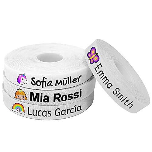 【100 ETIKETTEN MIT NAMEN UND SYMBOL】 Enthält 1 Rolle mit 100 Etiketten mit demselben Namen, den Sie auf die Schaltfläche "Jetzt anpassen" schreiben. Schreiben Sie den gewünschten Text und begleiten Sie ihn mit der Zeichnung, die Ihnen am besten gefällt. Jedes Etikett misst 6 cm breit x 1 cm hoch. 【70 % POLYESTER / 30 % BAUMWOLLE】 Umweltzertifizierte Etiketten. Der Stoff wurde in einem Labor geprüft, da er frei von toxischen Substanzen ist und für den Kontakt mit empfindlicher Haut geeignet ist. 【WASCHBESTÄNDIG】Dank eines ausgeklügelten Tintenübertragungssystems garantieren wir die Haltbarkeit des Drucks, ohne dass der Text gelöscht wird. Darüber hinaus haben die Etiketten auf der Rückseite einen Klebstoff, der Waschen bis 60 ° C und Trockner standhält. 【SIE GELTEN IN 20 SEKUNDEN】 Um auf die Kleidung zu kleben, müssen sie mit einem Haushaltsbügeleisen gebügelt werden. Anwendung: 1) Schneiden Sie das Etikett ab. 2) Auf das Kleidungsstück legen und mit einem feinen Tuch schützen. 3) Bügeln Sie bei maximaler Temperatur ohne Dampf für 20 Sekunden. Bewegen Sie die Platte nicht. 4) Warten Sie 24 Stunden vor dem ersten Waschen. So einfach! 【IDEAL FÜR KINDER】Personalisierte Namensschilder sind ideal, um die Kleidung der Kleinen zu jedem Anlass zu kennzeichnen: für Schulkleidung, Lager, Kindergarten, Urlaub, Sportkleidung,...