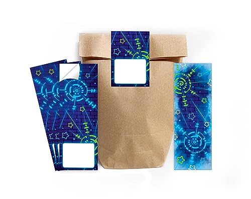Minkocards 10 Lesezeichen + 10 Geschenktüten (Natur) + 10 Aufkleber Laser Tag Lasertag Mitgebselset Gastgeschenke für Kindergeburtstag Jungsgeburtstag Mädchengeburtstag