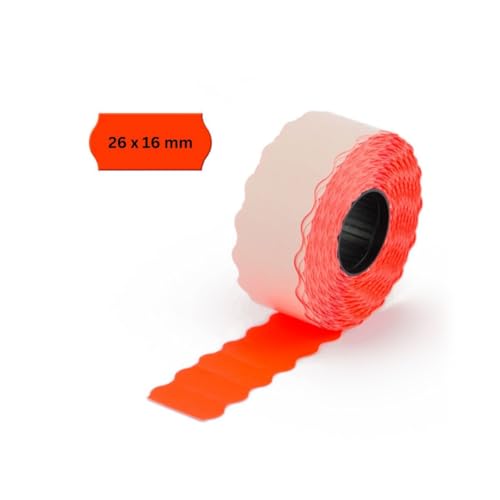 POKORNYS – 3.000 selbstklebende Etiketten für Preisauszeichner (rot / 26x12mm) I permanent haftend I Kennzeichnung mit Preis, Datum ... I Preisetiketten für Handauszeichner mit Wellenrand