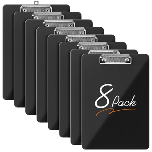 8 Stück Klemmbrett A4, Klemmbretter mit Gummierter Metallklemme, Clipboard Schreibbrett Hochwertige Bürobedarf für Studenten, Büro - Schwarz