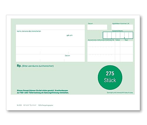 Frank Paperman | Privatrezept grün | Rezept Ärzte u. Heilpraktiker | 275 Blätter ungeblockt | Arztempfehlung | aktuelle Version | DIN A6 | grün (275)