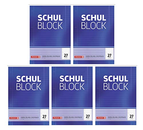 Brunnen 1052527 Schulblock/Notizblock (A4, 50 Blatt, liniert, mit Randlinien, Lineatur 27, gelocht, kopfverleimt, 70 g/m²) (5 Blöcke)