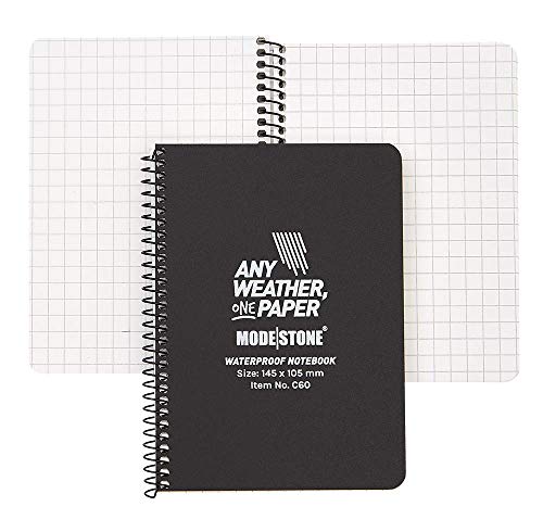 MODESTONE Outdoor Notizblock ca. A6 9,6 x14,8 cm schwarzer Cover | Spiralbindung oben 50 Blätter kariert 7x7mm | wasserfest reißfest feuerfest